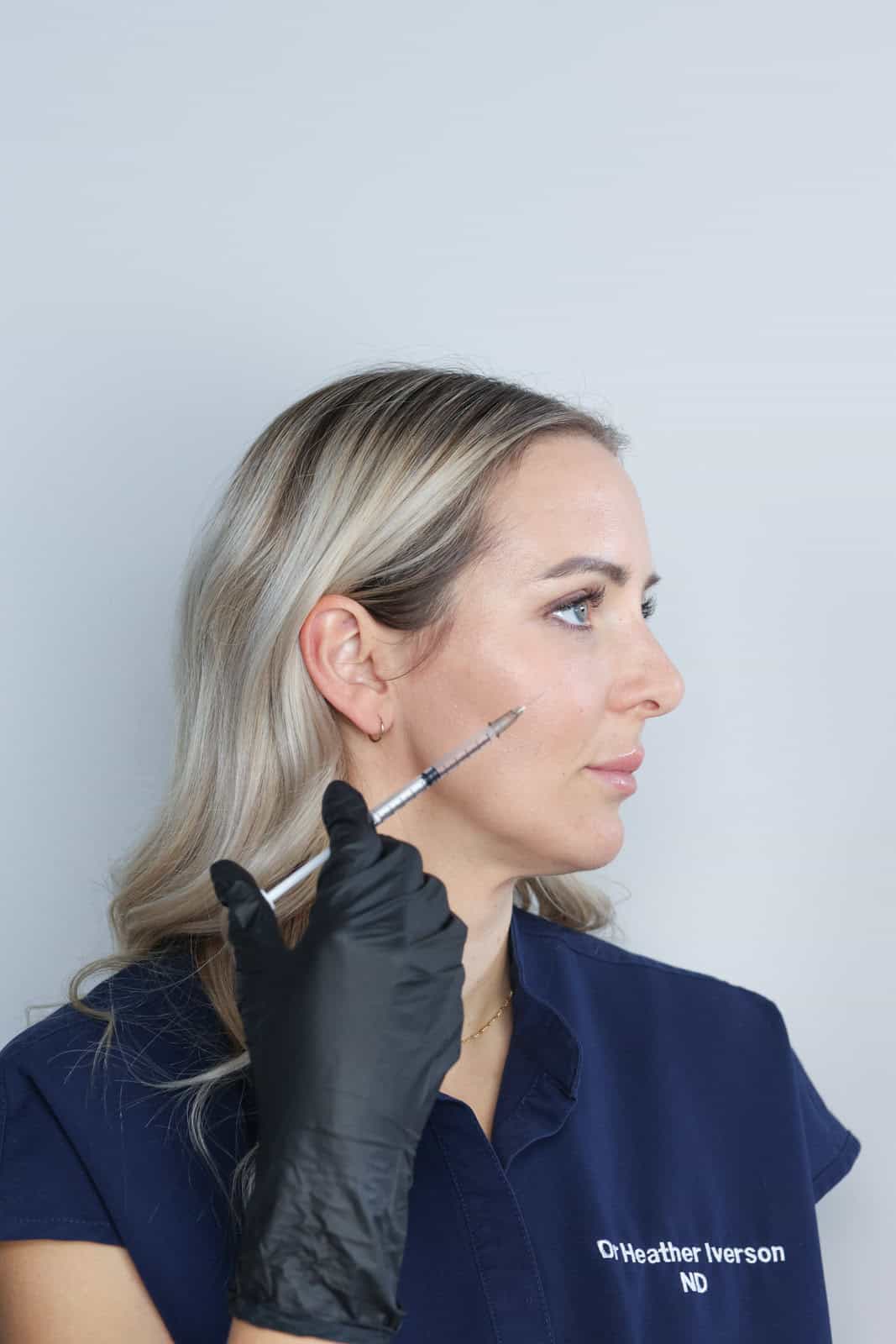 Dr. Heather Iverson, ND, offers a variety of categories of injections: neuromodulators (commonly known as botox), dermal fillers, dermatox (commonly known as micro-injections), and Sculptra.