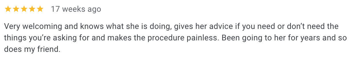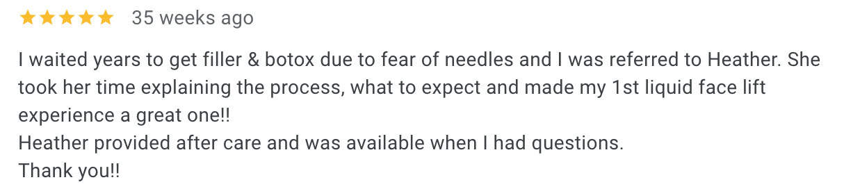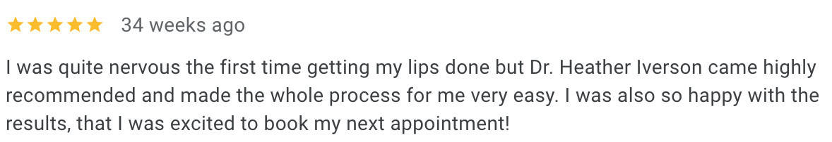 When choosing your cosmetic injector in Langley, you should always take your time and do your research. It’s crucial to find a cosmetic injector who aligns with your aesthetic goals, values facial balance and takes a holistic approach. Look for an injector who considers your entire face, not just the individual areas you want to treat, and listens carefully to your goals to create a look that enhances your natural beauty while keeping everything in harmony. To make sure you’re choosing the right cosmetic injector for YOU, check their reviews to see what their previous patients have to say, and consider their level of experience and education. I am grateful for all of my patients’ reviews across all three of my locations, but click here to see what my Langley patients have to say specifically. You should also check the injector’s previous patient transformations to ensure the results they are achieving for patients is aligned with the results you’d like to achieve.